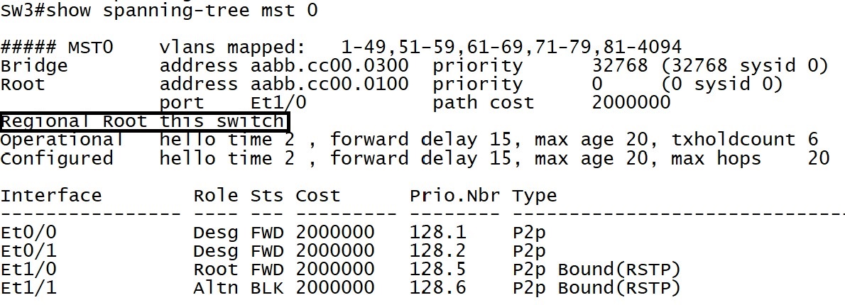 SW3이 CIST 영역 Root 스위치가 된 모습니다.(아래 사진 참조)