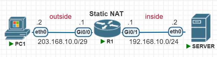 R1(config)# ip nat inside source static 192.168.10.2 209.168.10.1