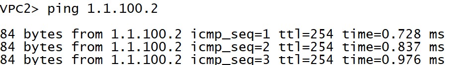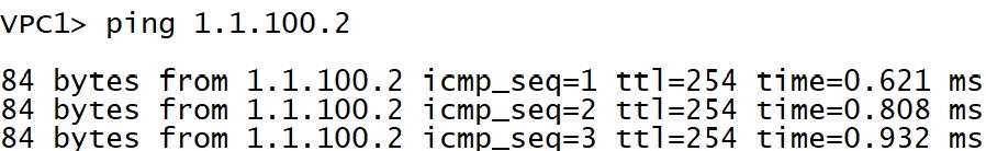 SW1(config)#vlan 10 SW1(config)int range e0/0-3 SW1(config-if)switchport mode access SW1(config-if)switchport access vlan 10 VPC1:ip 1.1.10.3/24 1.1.10.253 VPC2:ip 1.1.10.4/24 1.1.10.254 |