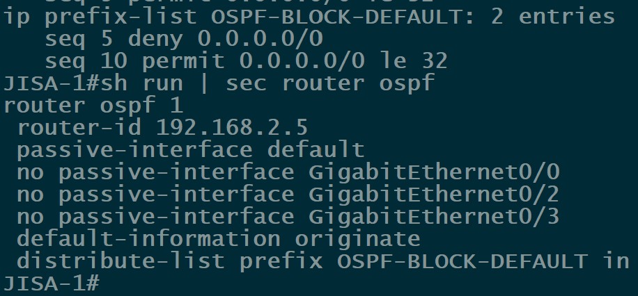 | 0.0.0.0/0 | deny | OSPF에서 수용하지 않음 (차단) |